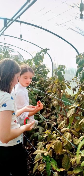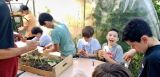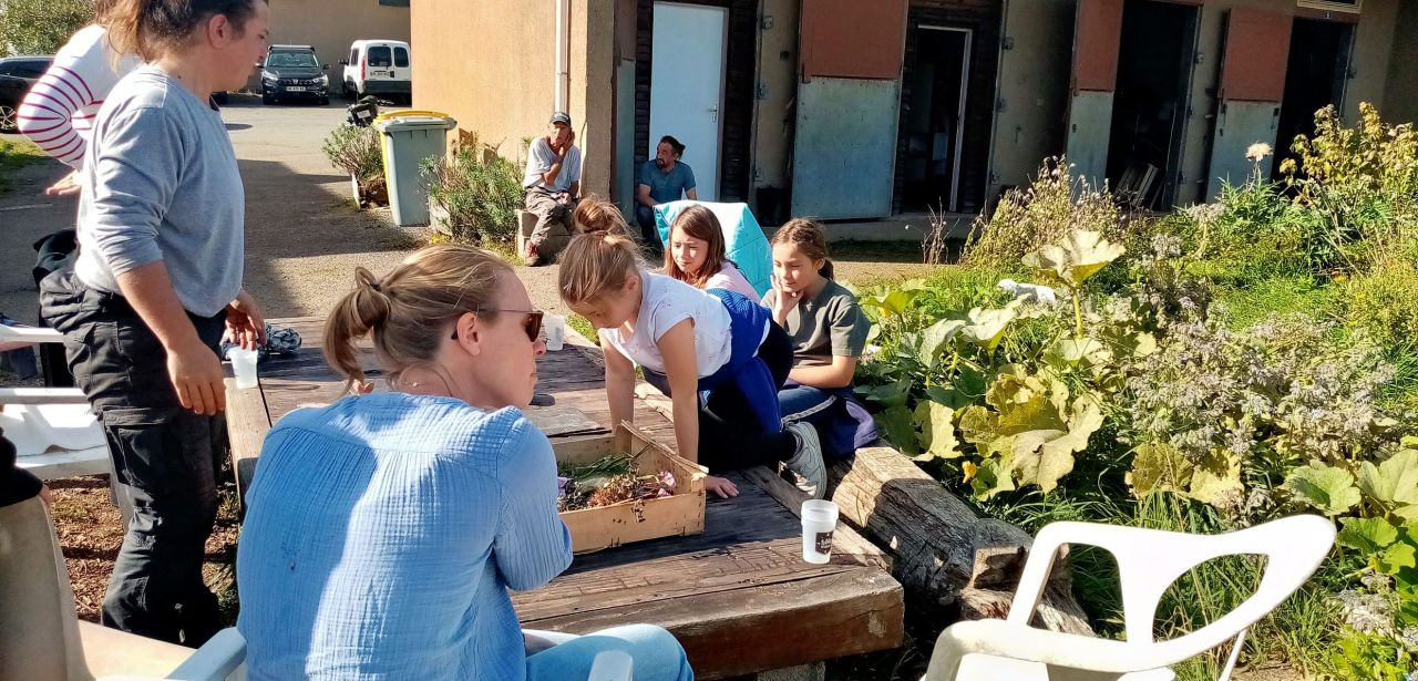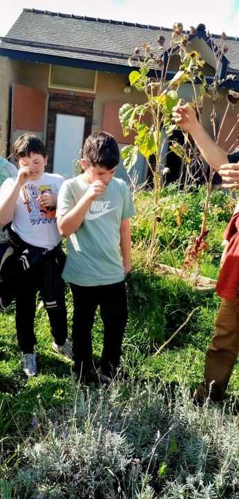 Dans un premier temps, les élèves ont déambulé dans les allées des serres et jardins pour découvrir et goûter les légumes et les fruits cultivés, mais aussi pour observer à l'œil nu ou à la loupe la faune et la flore de cet écosystème. Pour terminer cette visite, les élèves se sont répartis autour de 3 ateliers : la poterie, la fabrication de parfums et la confection de bouquet.
