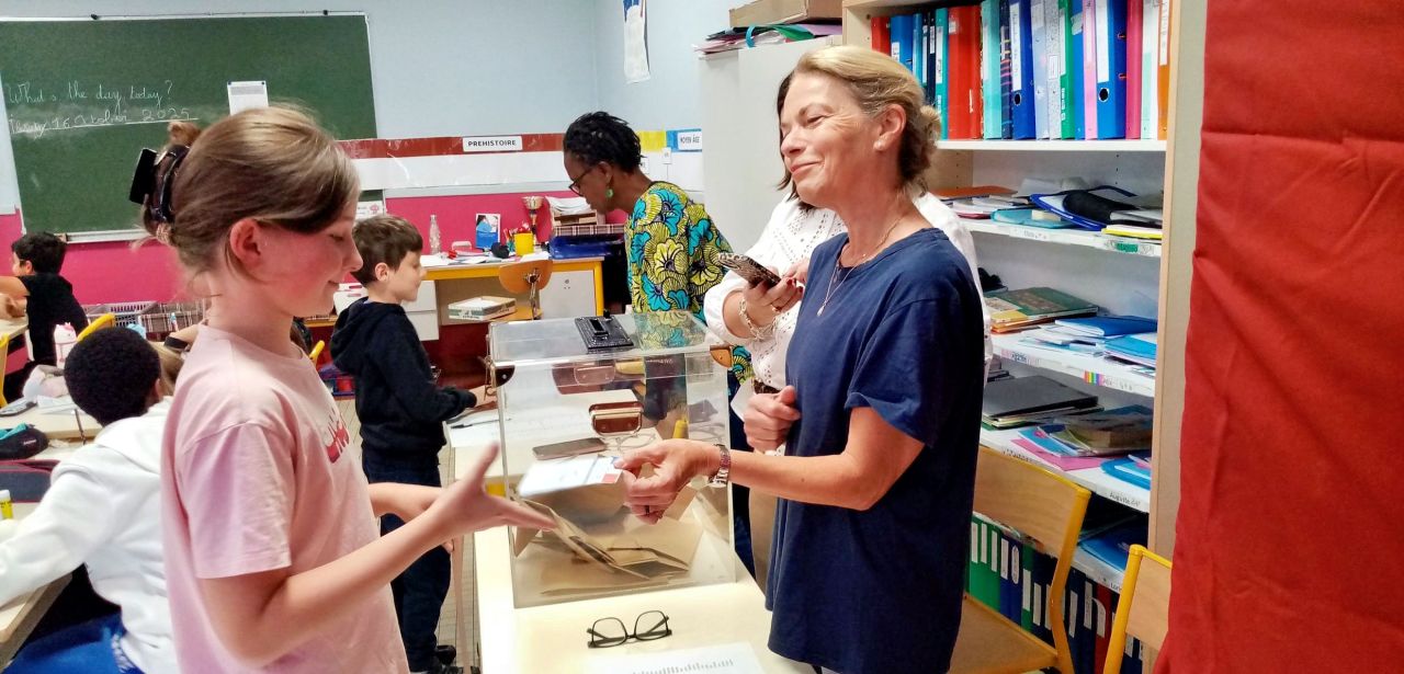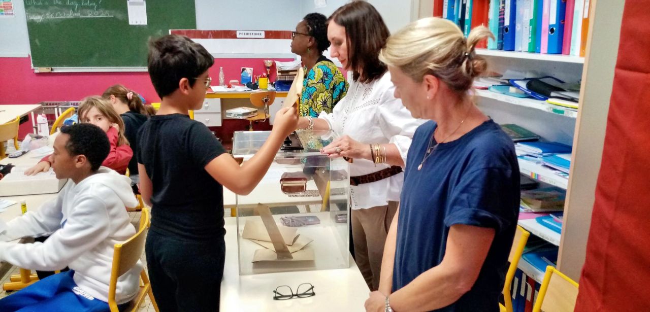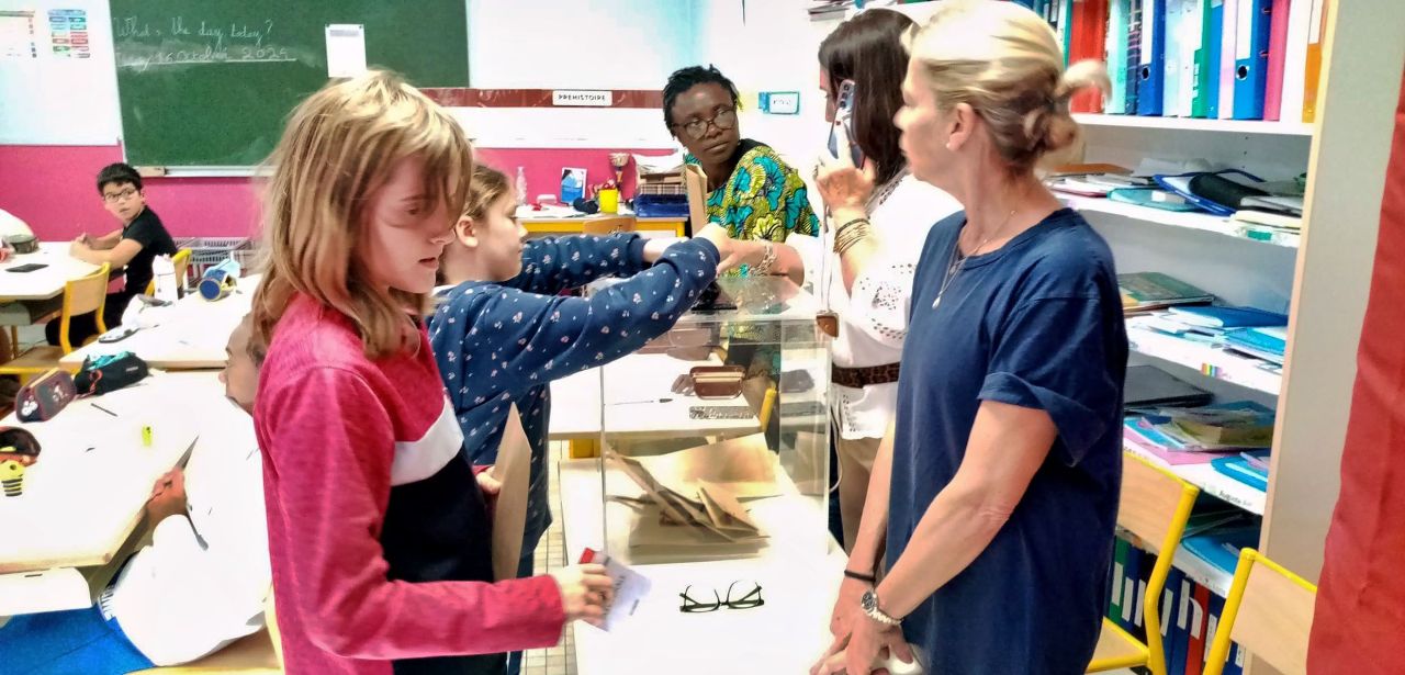 La présidente du bureau de vote, Mme la directrice Estelle était bien sur présente pour dire :" a voté ", accompagnée de ses 2 assesseurs .